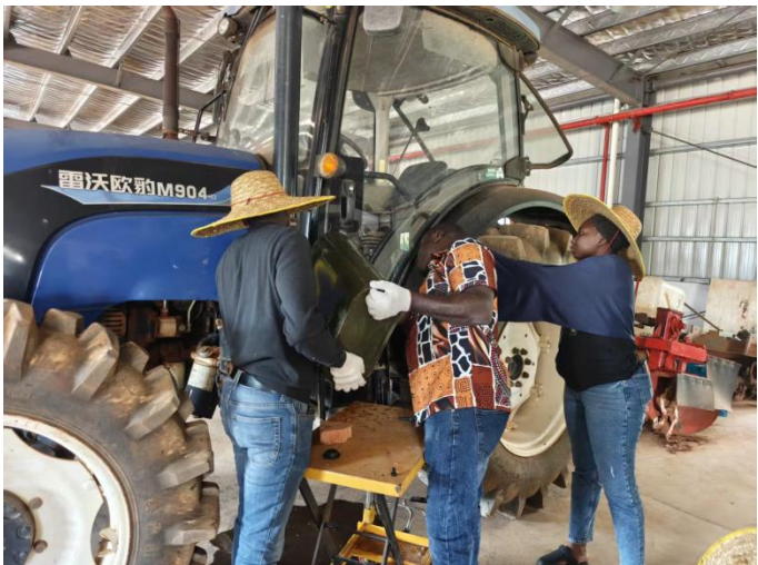 木薯机械实操培训是辽宁农业职业技术学院与加纳能源与自然资源大学共建的“鲁班工坊”项目核心培训内容之一,前期相关木薯机械已于2023年底由机械化研究室提供,作为加纳能源与自然资源大学“鲁班工坊”培训班的实训教具。此次学员到木薯机械研发制造单位,接受最规范、最专业的操作实训,旨在准确、深刻理解木薯装备的设计、使用,为今后“鲁班工坊”提高木薯机械实操培训质量打好基础。