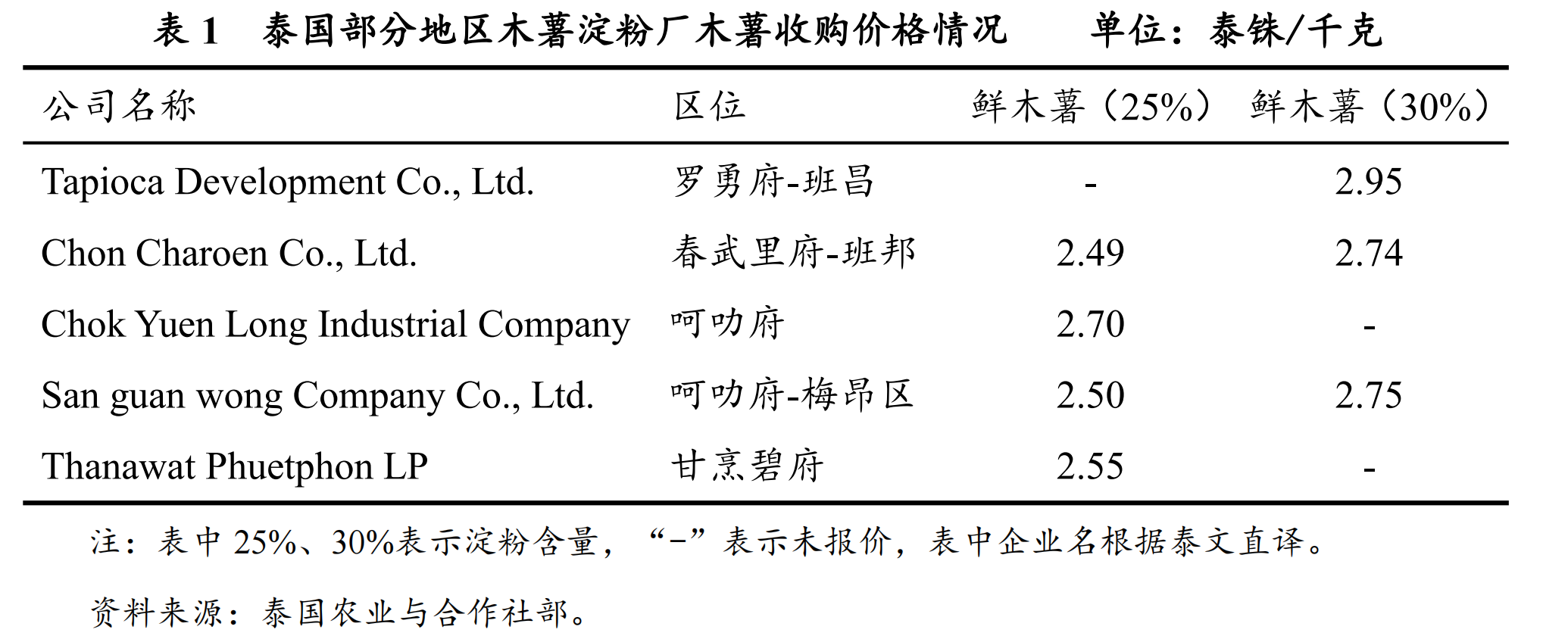 (一)泰国鲜薯收购价格持续上升