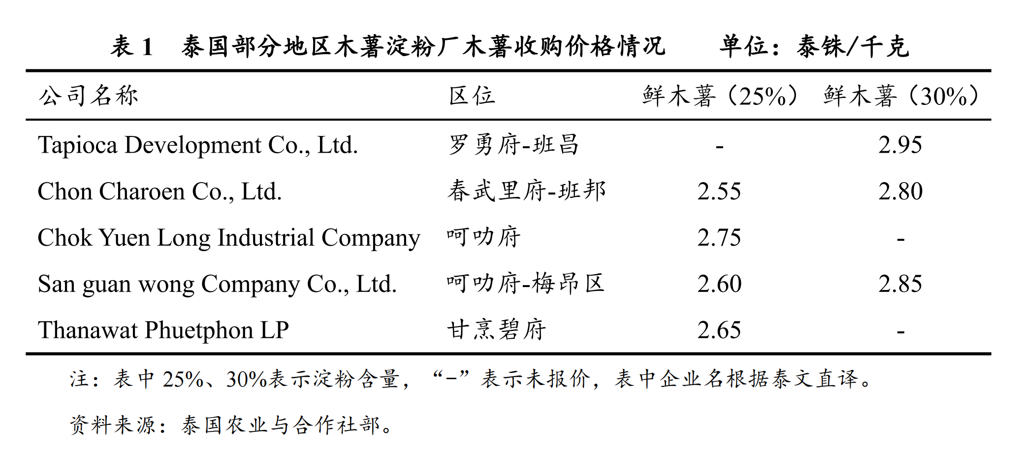 (一)泰国鲜薯收购价格持续上升