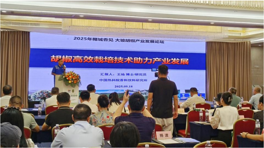 在“大坡胡椒产业发展大会”环节,王灿研究员应邀作了题为《胡椒高效栽培技术助力产业发展》的专题报告。报告中,系统阐述了胡椒现代化高效栽培的关键技术,包括科学施肥与土壤管理、水肥一体化技术等内容。为在场的种植农户、企业代表以及政府管理部门提供了宝贵的技术指导和创新发展思路。