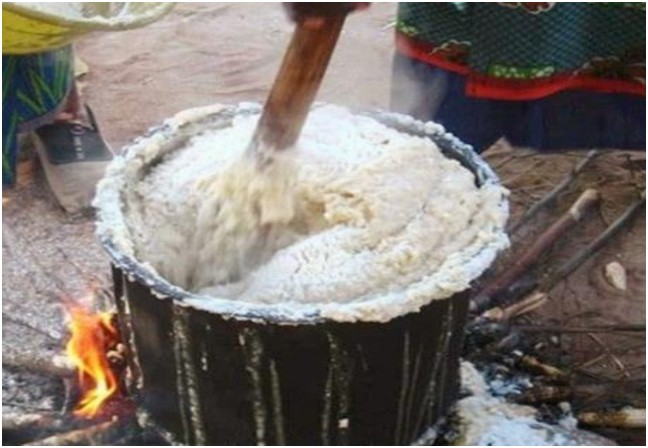 1550年左右, 木薯由葡萄牙商人首次传入非洲。在非洲,木薯更是一种重要的食物来源,相当于我们吃的小麦面粉的重要地位。非洲人吃木薯有各种各样的方法,其中最重要的莫过于吃一种由木薯粉发酵而成的食物。由于木薯本身全株含毒,木薯含有的有毒物质为亚麻仁苦苷,如果摄入生的或未煮熟的木薯或喝其汤,都有可能引起中毒,原因是亚麻仁苦苷或亚麻仁苦苷酶经胃酸水解后产生游离的氢氰酸,从而使人体中毒,所以在食用前需要经过特殊的处理,一般使用清水浸泡数天,再煮熟即可去除绝大部分毒性。