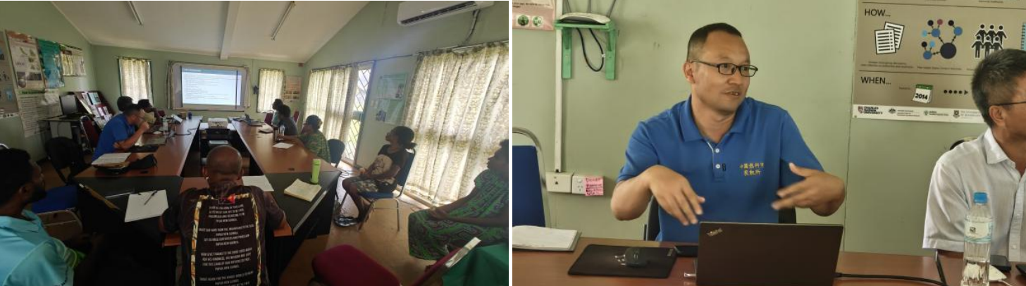 在座谈交流环节,巴新国家农业研究所Roselyn Winston博士表达了对体系专家到来的热烈欢迎及木薯生产机械化技术培训的肯定,李国杰副研究员作了“木薯生产全程机械化技术研究进展”专题报告,双方针对巴新木薯生产机械化需求开展了探讨,达成共同推动巴布亚新几内亚木薯生产机械化发展合作共识。