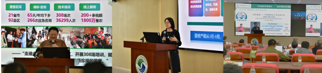 蚕桑体系专家刘吉平教授、荔枝龙眼体系专家王思威副研究员、棉花体系专家张雷副研究员作主旨报告