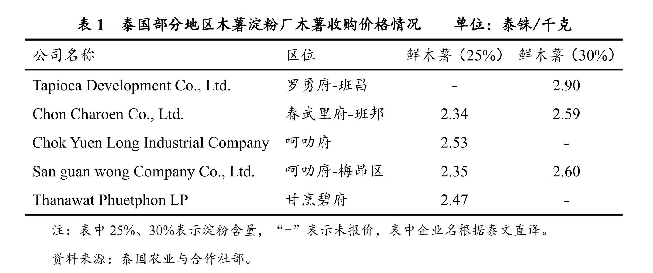 (一)泰国鲜薯收购价格持续上升